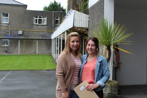 Although the new system of points in the general Leaving Cert was confusing for the students at first they soon got used to it and were able to work out their points with the help of Guidance Counsellor Dara Mee. Twins Gillian and Rachel Browne were delighted with their results. They called in very early and then called back later to meet Chloe Twibill, Head Girl, who collected her results with her mother Aileen. “We are delighted with Chloe’s results and cannot thank the school enough for all they did for Chloe. We are so grateful to all the staff – every one of them did an amazing job.”